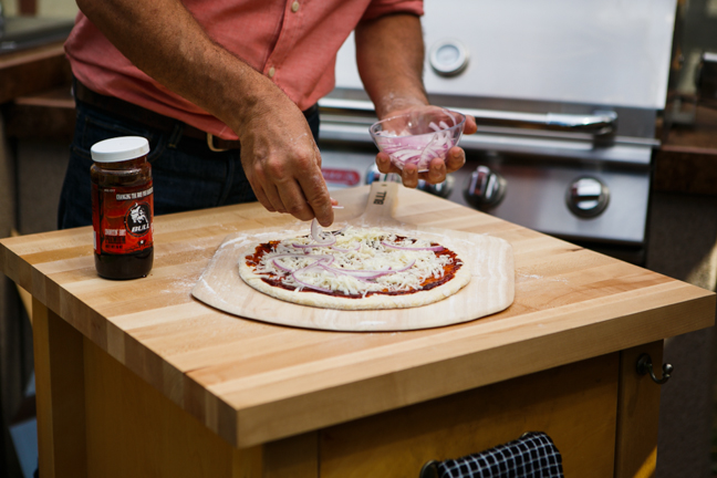 - Like I mentioned, this was pizza was created to demonstrate the grilling tool. Use it as a starting point ... crumbled bacon, sliced peppers or jalapeños, feta cheese, corn kernels, etc. would all be delicious additions to this pizza!