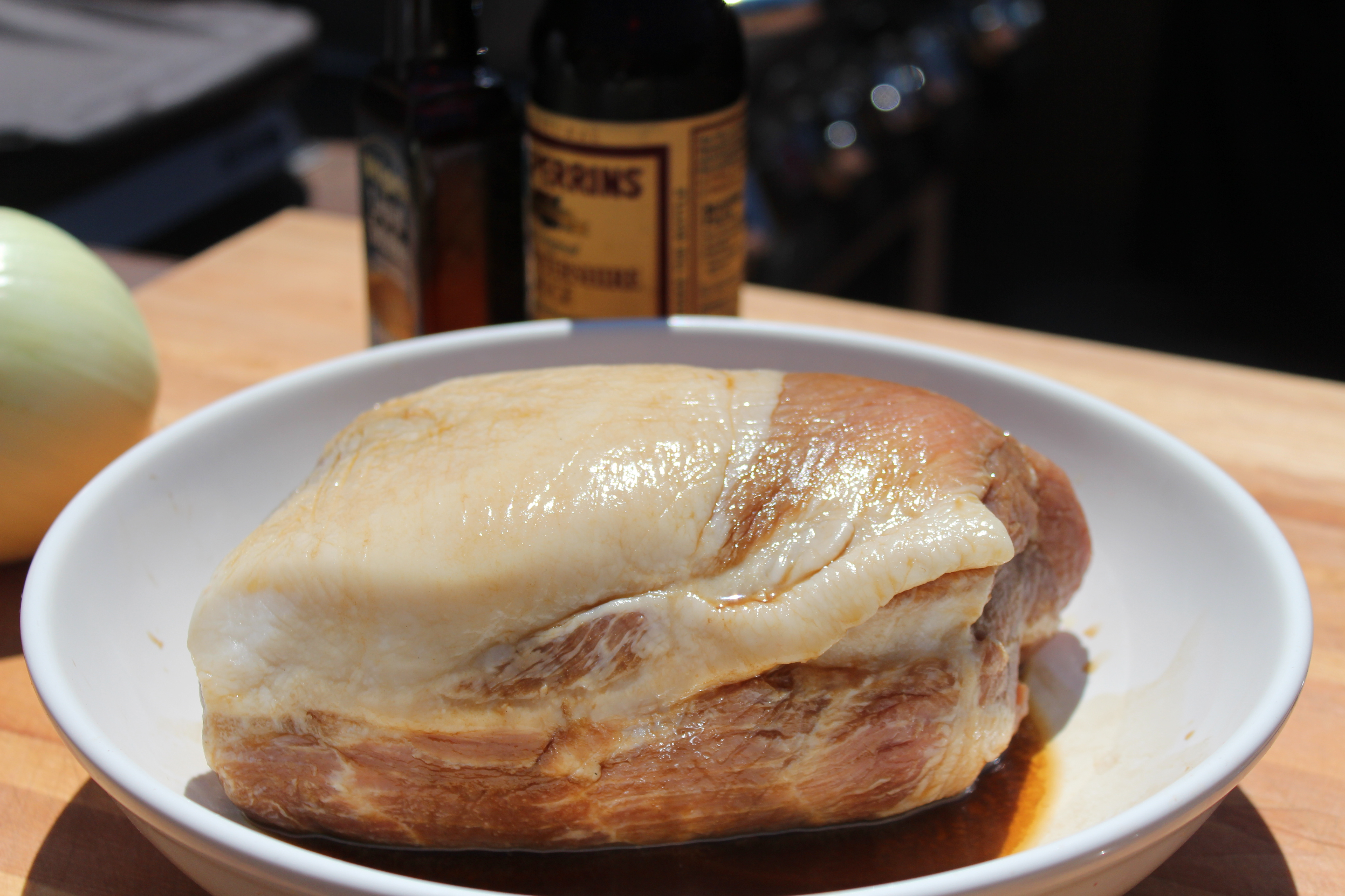 - Marinate in Worcestershire sauce and liquid smoke
