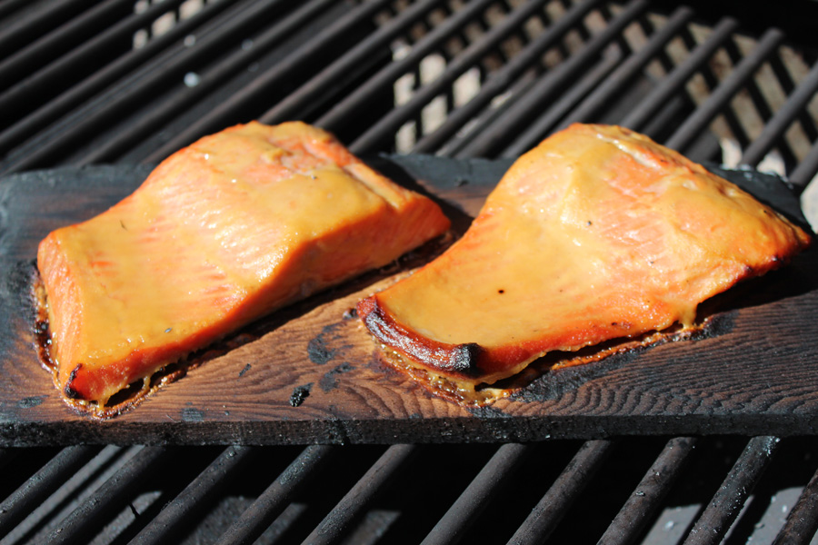 - cedar planked salmon on grill