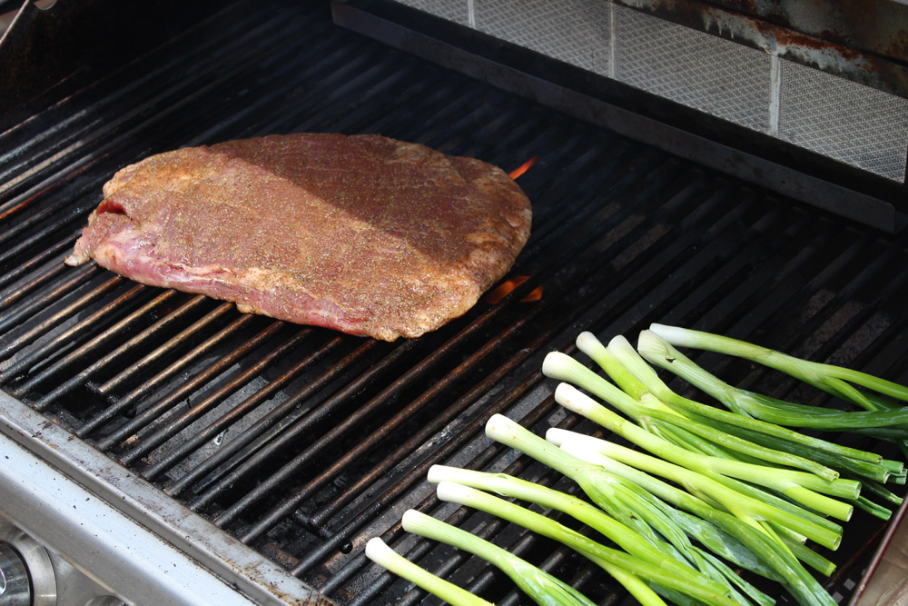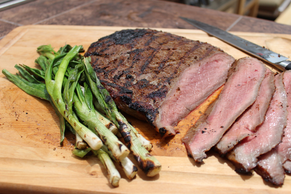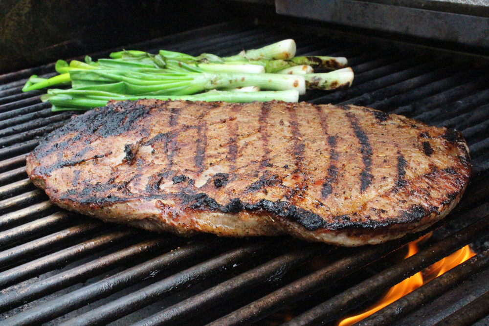 - Preheat grill for direct cooking over high heat; if you have multiple burners, set and are to medium low for the scallions. Otherwise grill the scallions while the steak reposes after cooking. As always, brush and oil grates before cooking.