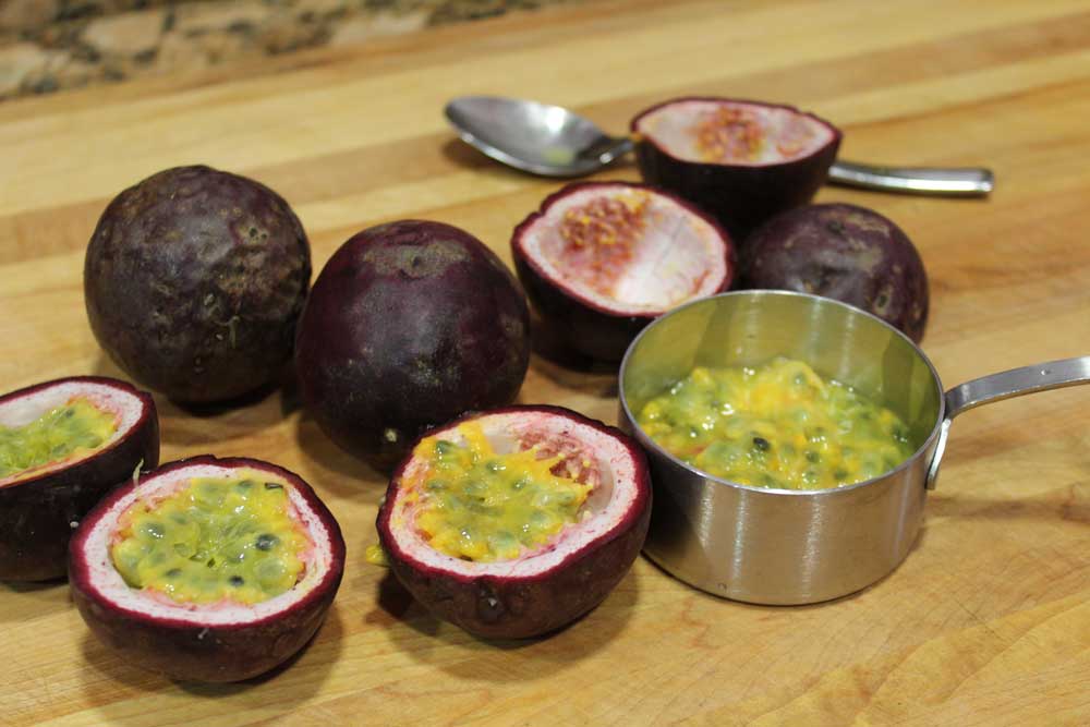 - ½ cup lilikoi (passion fruit) pulp and seeds (about 6 lilikoi)