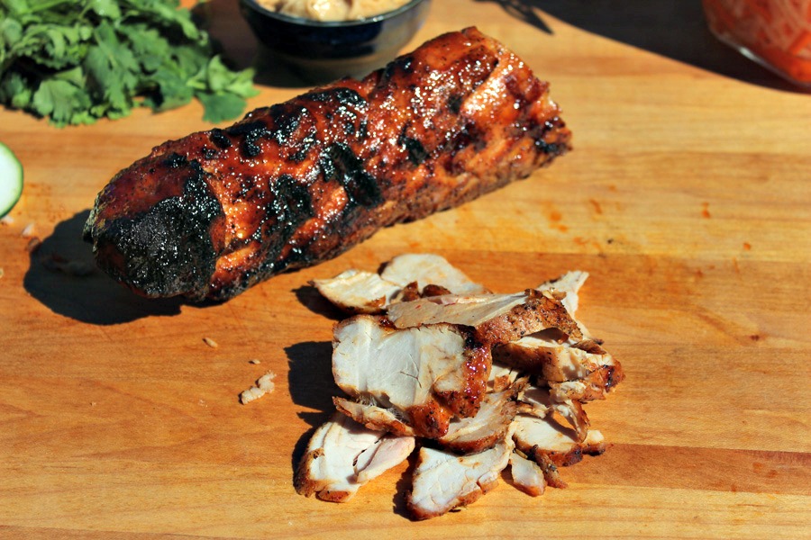 Not to long ago, I had a fantastic roast pork bahn mi in San Diego that instead of the usual butter or mayonnaise, had been slathered with a compound butter with simply made with butter and soy sauce. I know it sounds obvious, but boy, it made all the difference in the sandwich and I have adopted the soy sauce butter in this recipe. Honestly, that butter would be great on some grilled corn or any other vegetables).